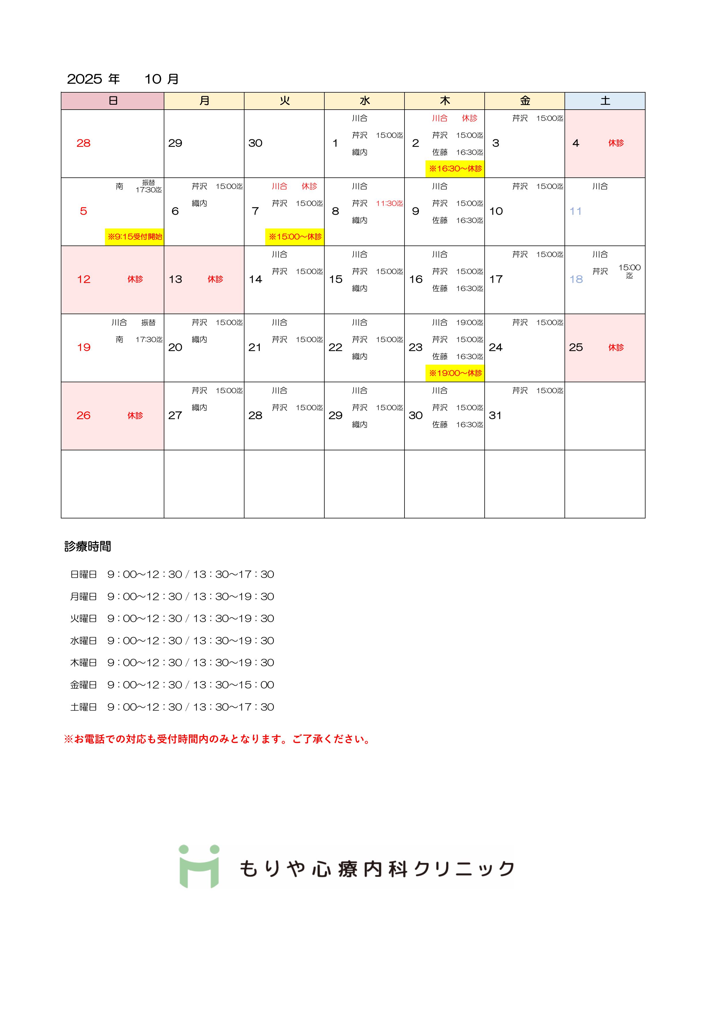 10月の休診のお知らせになります。【PDFで見る】下記の詳しく見るからもPDFでご確認いただけます。どうぞよろしくお願いいたします。