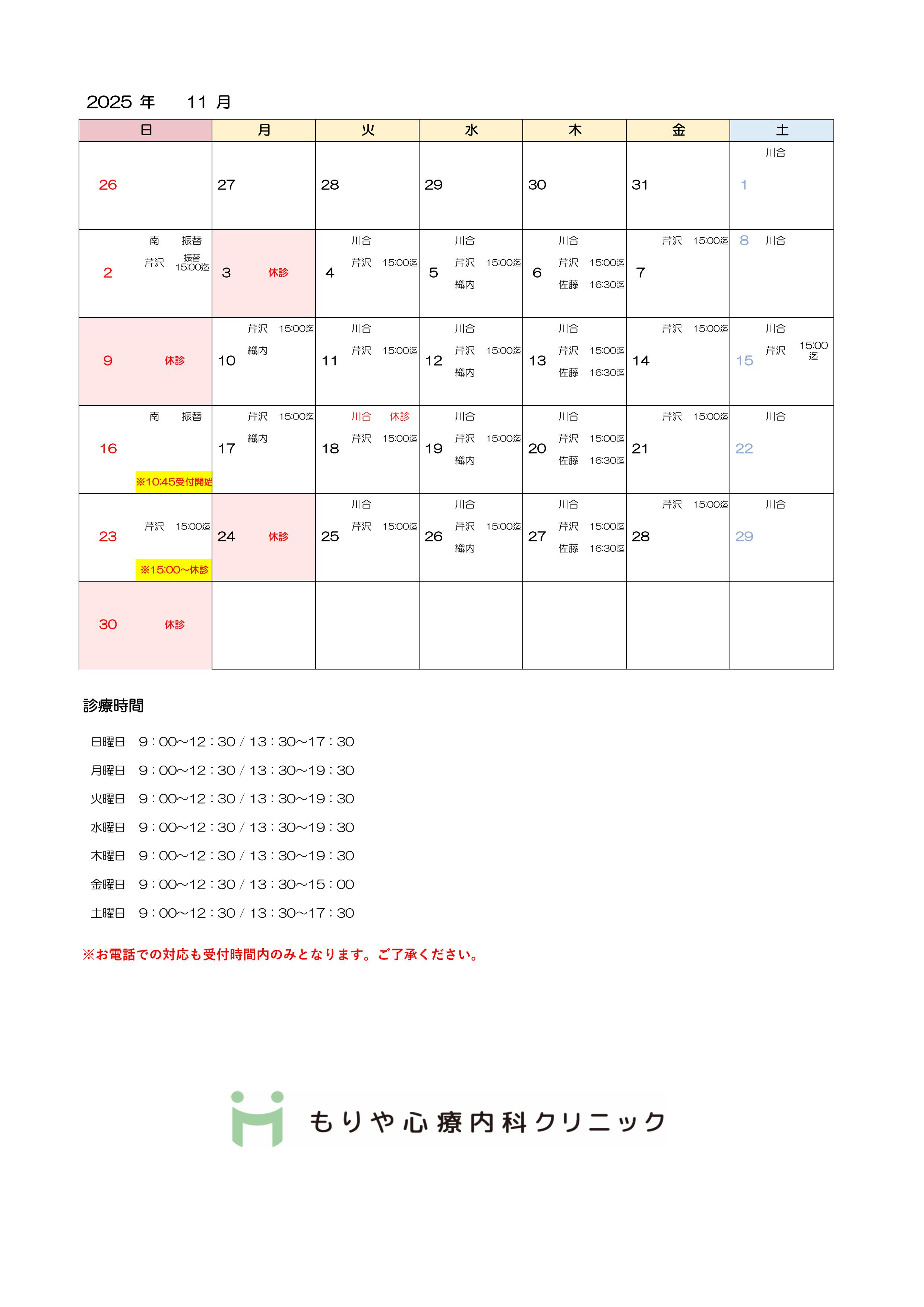 11月の休診のお知らせになります。【PDFで見る】下記の詳しく見るからもPDFでご確認いただけます。どうぞよろしくお願いいたします。
