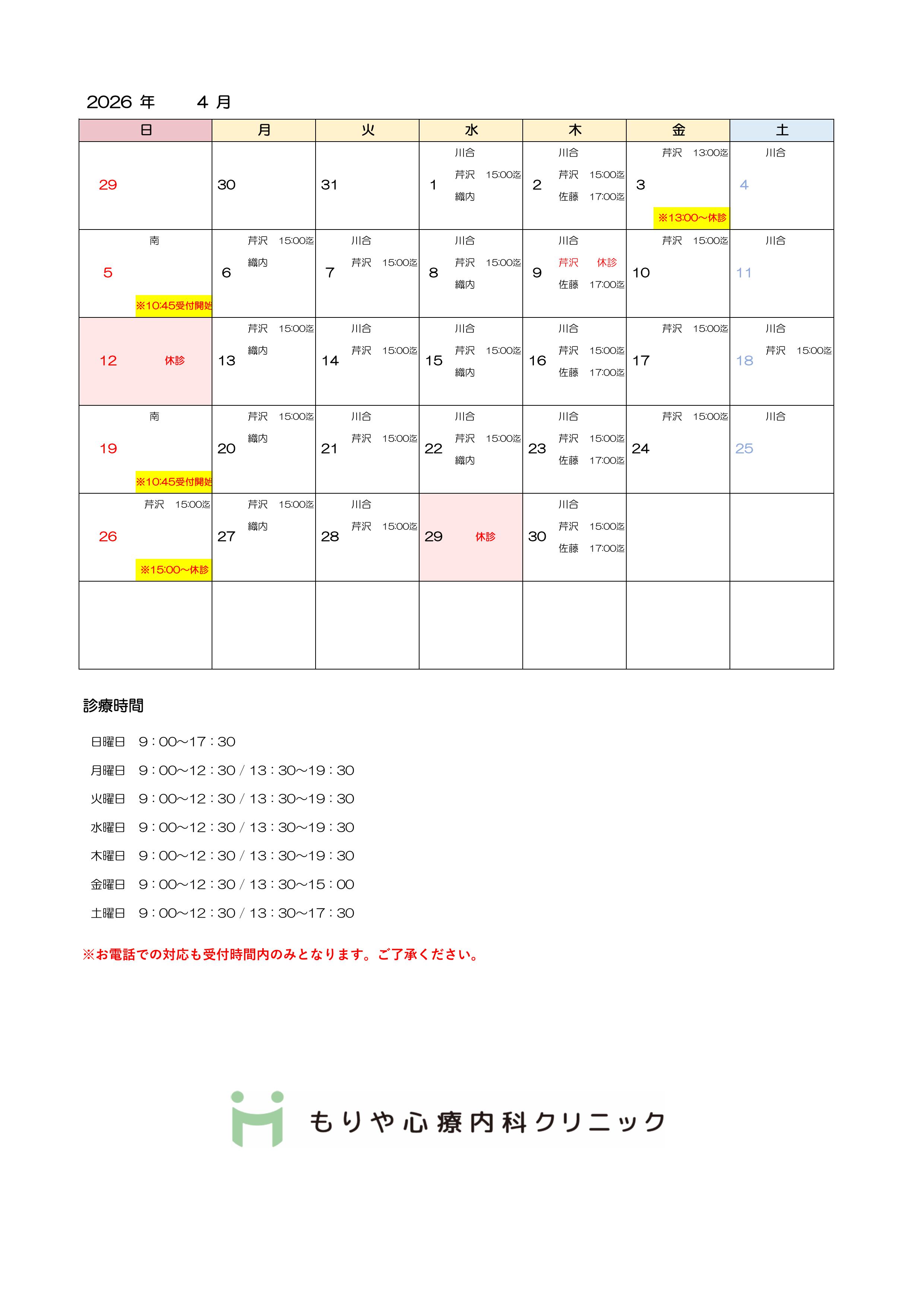 4月の休診のお知らせになります。【PDFで見る】下記の詳しく見るからもPDFでご確認いただけます。どうぞよろしくお願いいたします。