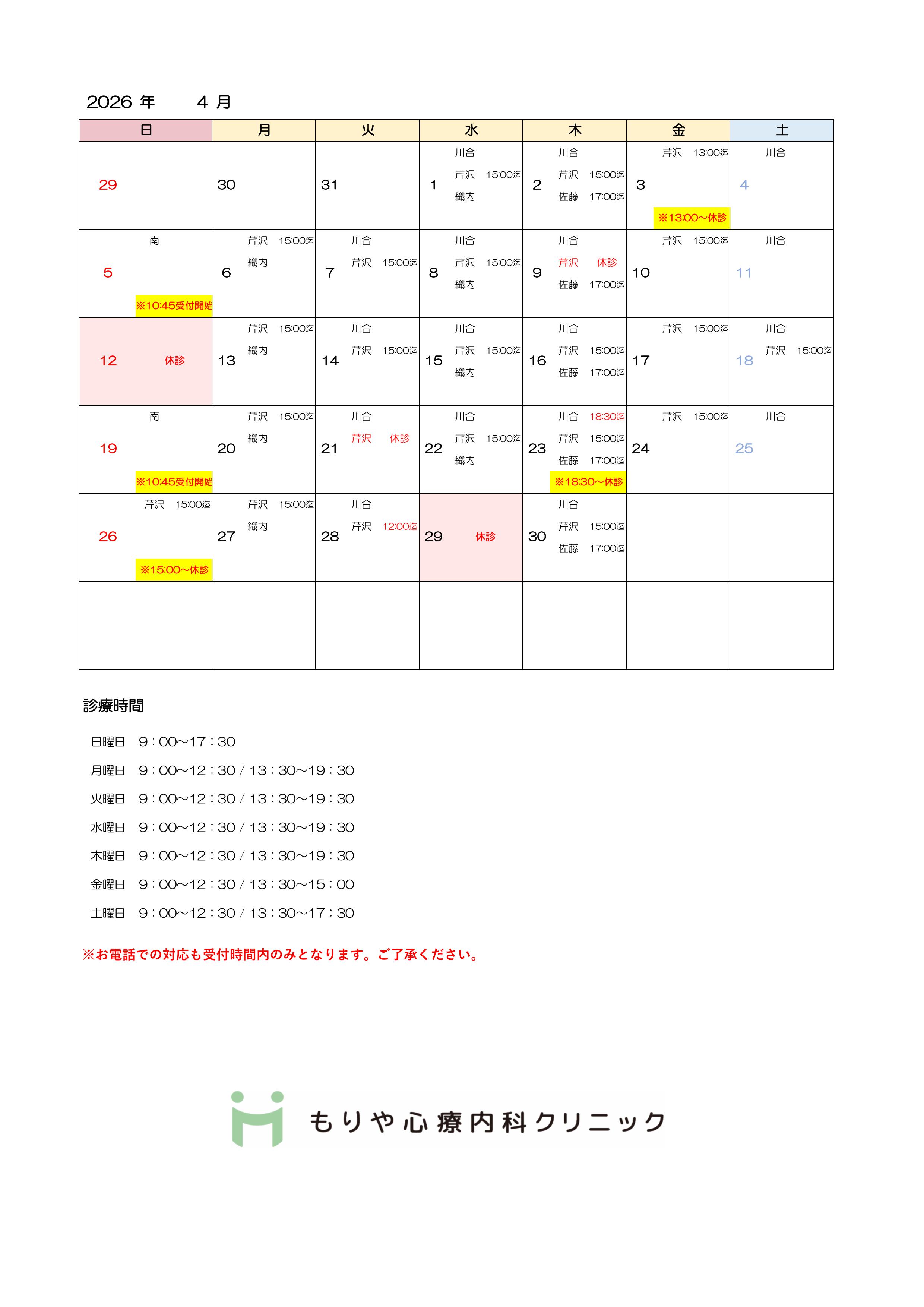 4月の休診のお知らせになります。【PDFで見る】下記の詳しく見るからもPDFでご確認いただけます。どうぞよろしくお願いいたします。